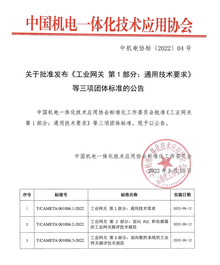 2022年5月13日,BG视讯BG智通核心参编的工业网关标准,已正式顺利获得审批!将于2022年8月12日正式实施!