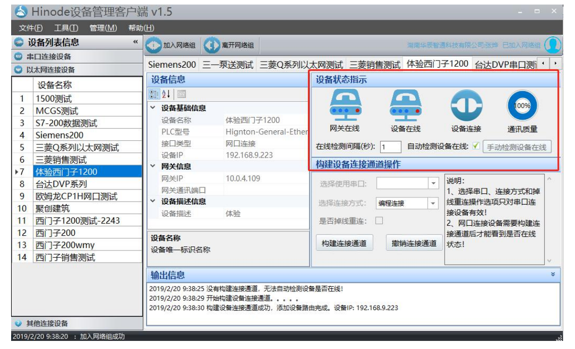 1.客户端正常上线,网关及设备图标上线,指示灯亮,如图,最小化窗口即可(不能关闭客户端)。